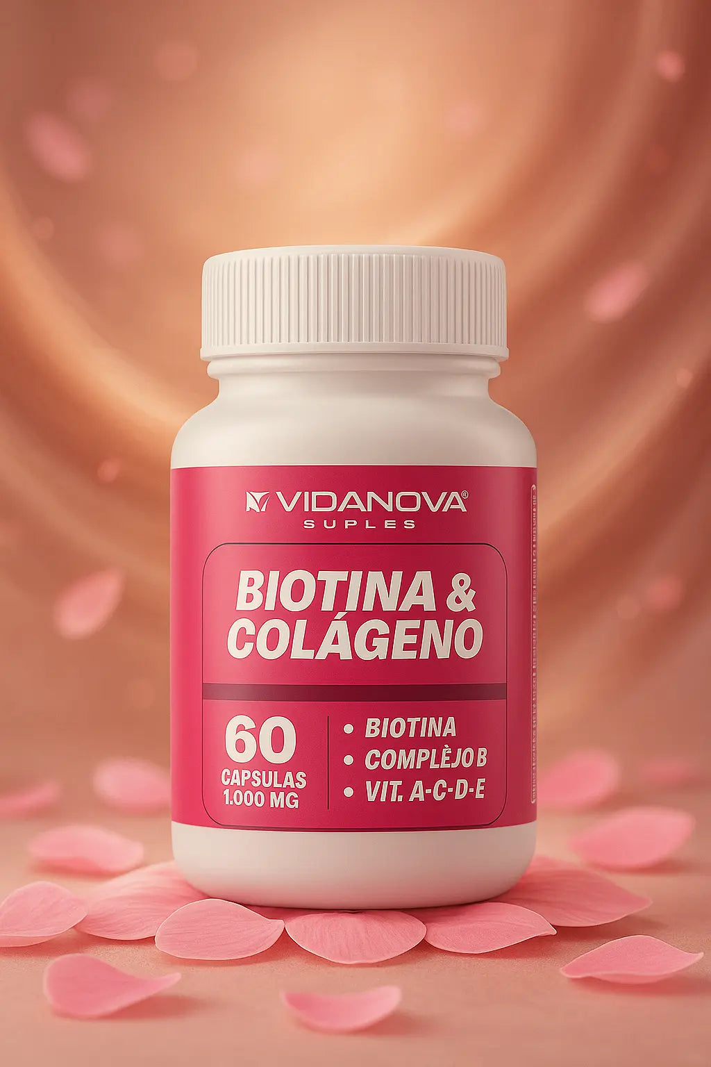Fórmula avanzada con Biotina, Colágeno Hidrolizado, Vitaminas y Minerales diseñada para fortalecer tu cabello, devolver firmeza a tu piel y dar resistencia a tus uñas. Una solución integral para nutrir tu belleza desde adentro de forma natural.