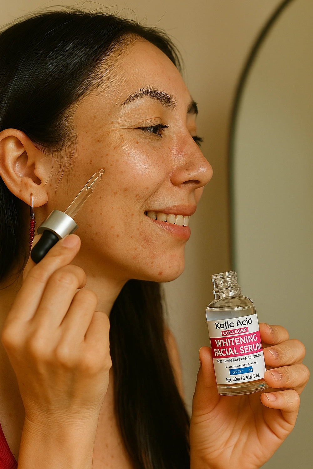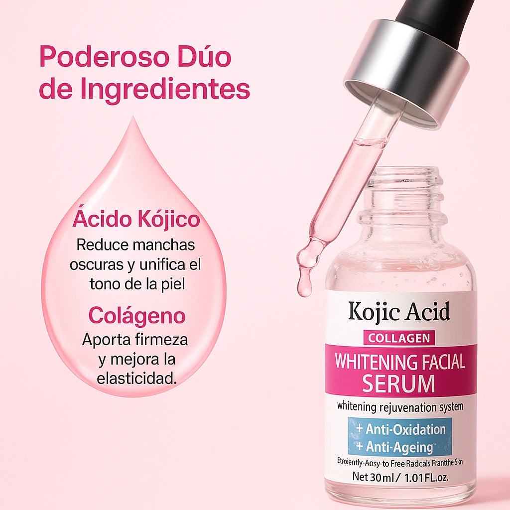 Descubre el poder del Ácido Kójico y el Colágeno en un serum iluminador y reafirmante. Su fórmula ultraligera se absorbe al instante, ayudando a atenuar manchas y marcas oscuras mientras mejora la firmeza y elasticidad de la piel. Ideal para todo tipo de piel, incluso las más sensibles, deja el rostro visiblemente más uniforme, radiante y rejuvenecido, sin sensación grasosa.
